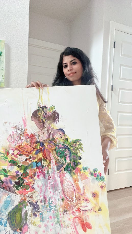 I am Manju Riyaz — a mixed media and digital artist rooted in joy, texture, and the quiet beauty of an ordinary life, well-felt.